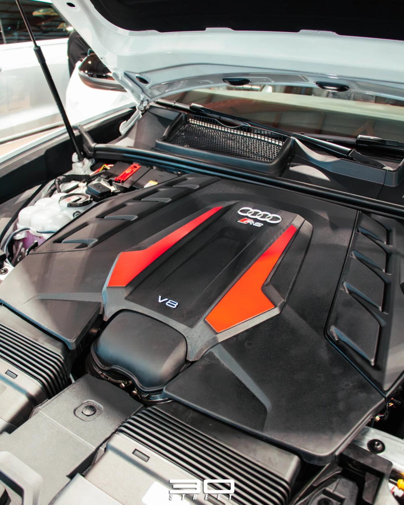 En su motorización encontramos un V8 Twinturbo MHEV que produce 632Hp y 850Nm acoplado a una transmisión Triptonica de 8 cambios y sistema Quattro con diferencial deportivo, logra un 0-100km en 3.6 segundos con un peso de 2.480 kg.